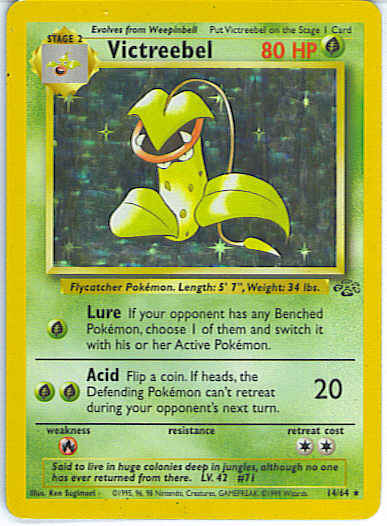 | Type | Grass | | Pokemon serie | Jungle | | Stadie | Stage 2 | | HP | 80 | | Sjældenhed | Rare | | Tilbagetrækning | 2 | | Svaghed | R | | Kortnummer | 14 | | Evne |