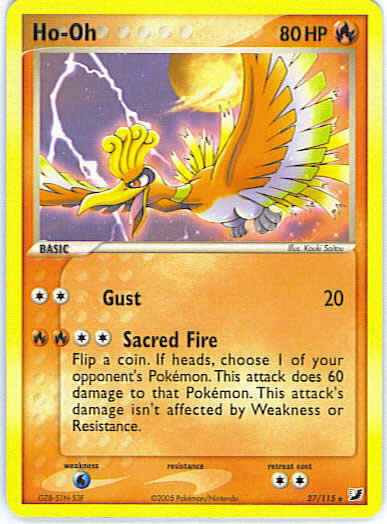 [CCRR] Sacred Fire - Flip a coin. If heads, choose 1 of your opponent's Pokemon. This attack does 60 damage to that Pokemon. This attacks damage isn't affected by Weakness or Resistance.