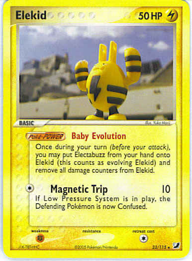 | Type | Lightning | | Pokemon serie | Unseen Forces | | Stadie | Basic | | HP | 50 | | Sjældenhed | Rare | | Tilbagetrækning | 1 | | Svaghed | F | | Kortnummer | 23 | | Evne |