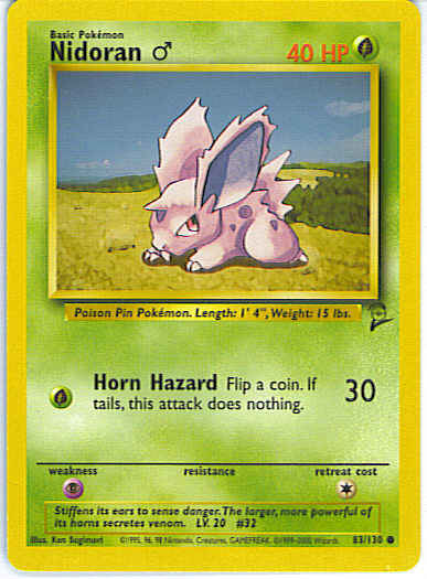 | Type | Grass | | Pokemon serie | Base Set 2 | | Stadie | Basic | | HP | 40 | | Sjældenhed | Common | | Tilbagetrækning | 1 | | Svaghed | P | | Kortnummer | 83 | | Evne |