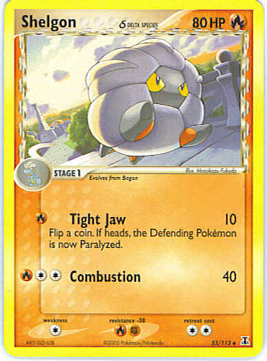 | Type | Fire | | Pokemon serie | Delta Species | | Stadie | Stage 1 | | HP | 80 | | Sjældenhed | Uncommon | | Tilbagetrækning | 2 | | Modstand | FR | | Svaghed | C | | Kortnummer | 53 | | Evne |