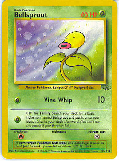 [G] Call for Family - Search your deck for a Basic Pokemon named Bellsprout and put it onto your Bench. Shuffle your deck afterward. (You can't use this attack if your Bench is full.)