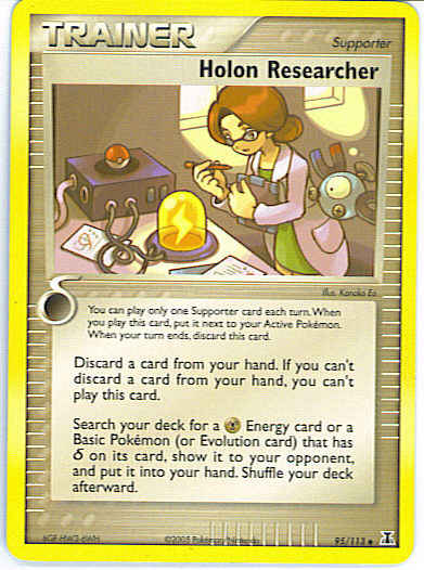 Discard a card from your hand. If you can't discard a card from your hand, you can't play this card. Search your deck for a M Energy card or a Basic Pokemon (or Evolution card) that has Delta Species symbol on its card, show it to your opponent, and put it into your hand. Shuffle your deck afterward.