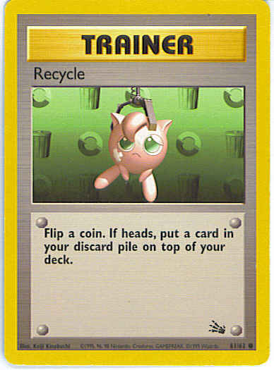 Flip a coin. If heads, put a card in your discard pile on top of your deck.