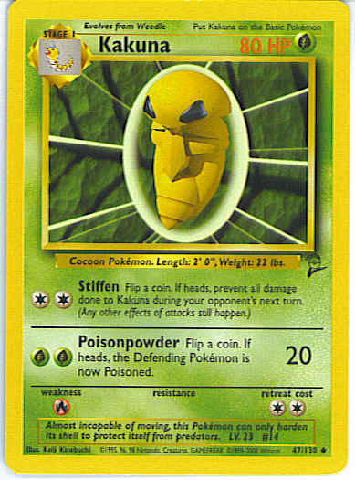 [CC] Stiffen - Flip a coin. If heads, prevent all damage done to Kakuna during opponent's next turn. (any other effects of attacks still happen.)