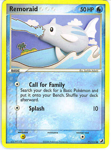 | Type | Water | | Pokemon serie | Unseen Forces | | Stadie | Basic | | HP | 50 | | Sjældenhed | Common | | Tilbagetrækning | 1 | | Svaghed | L | | Kortnummer | 71 | | Evne | [C] Call for Family - Search you deck for a Basic Pokemon and put it onto your Bench. Shuffle your deck afterward. [C] Splash (10) | | Evne2 | [C] Call for Family - Search you deck for a Basic Pokemon and put it onto your Bench. Shuffle your deck afterward. [C] Splash (10) | | Kunstner | Sachiko Adachi |