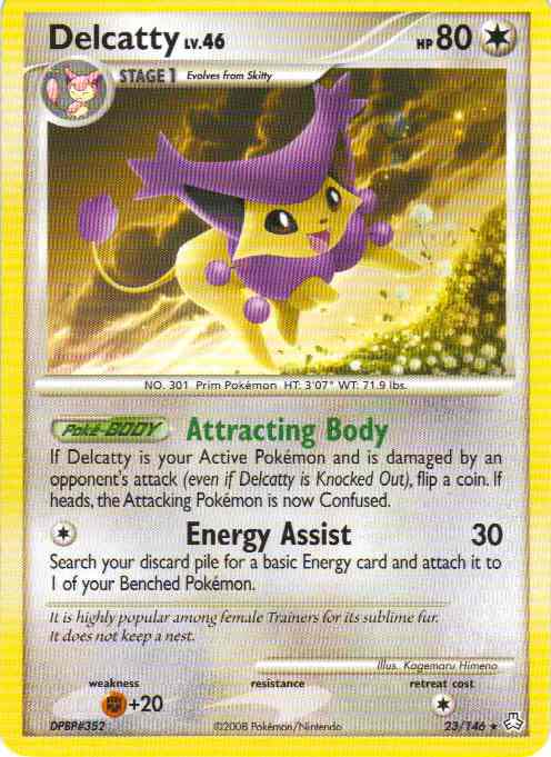 | Type | Colorless | | Pokemon serie | Legends Awakened | | Stadie | Stage 1 | | HP | 80.0 | | Sjældenhed | Rare | | Tilbagetrækning | 1.0 | | Svaghed | F+20 | | Kortnummer | 23 | | Evne |