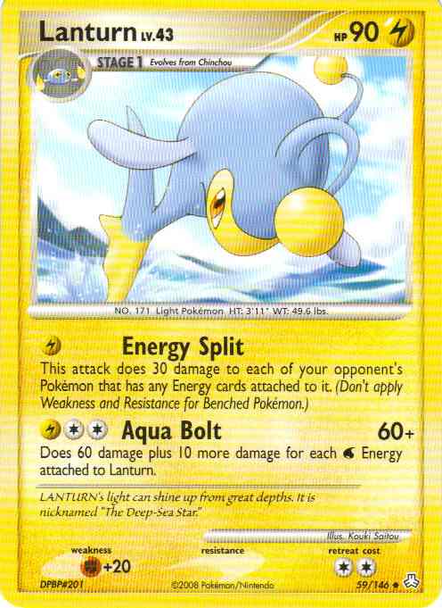 [CCL] Aqua Bolt (60+) Does 60 damage plus 10 more damage for each W Energy attached to Lanturn.