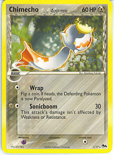 | | Evne2 | [C] Wrap - Flip a coin. If heads, the Defending Pokemon is now Paralyzed. [CM] Sonicboom (30) This attack's damage isn't affected by Weakness or Resistance.