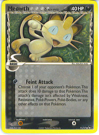 | Type | Darkness | | Pokemon serie | OP Series 5 | | Stadie | Basic | | HP | 50 | | Sjældenhed | Common | | Tilbagetrækning | 1 | | Svaghed | F | | Kortnummer | 11 | | Evne | [D] Feint Attack - Choose 1 of your opponent's Pokemon. This attack does 10 damage to that Pokemon. This attack's damage isn't affected by Weakness, Resistance, Poke-Powers, Poke-Bodies, or any other affects on that Pokemon.