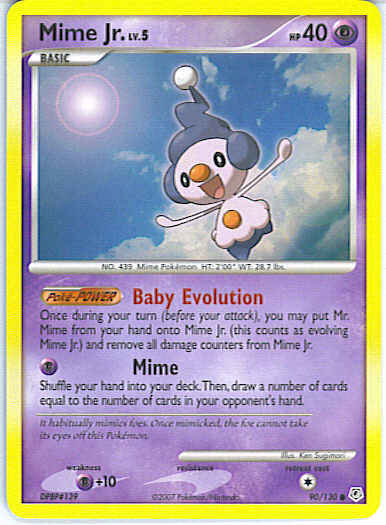 | Type | Psychic | | Pokemon serie | Diamond and Pearl | | Stadie | Basic | | HP | 40 | | Sjældenhed | Common | | Tilbagetrækning | 1 | | Svaghed | P+10 | | Kortnummer | 90 | | Evne |