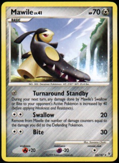 [M] Turnaround Standby - During your next turn, any damage done by Mawile's Swallow or Bite to your opponent's Active Pokemon is increased by 40 (before applying Weakness and Resistance).