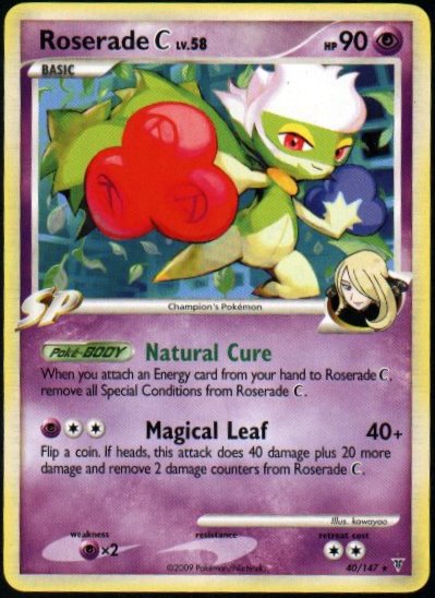 [PCC] Magical Leaf (40+) Flip a coin. If heads, this attack does 40 damage plus 20 more damage and remove 2 damage counters from Roserade C.