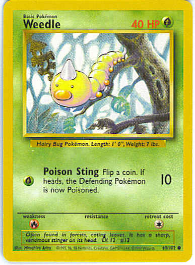 | Type | Grass | | Pokemon serie | Base | | Stadie | Basic | | HP | 40 | | Sjældenhed | Common | | Tilbagetrækning | 1 | | Svaghed | R | | Kortnummer | 69 | | Evne |