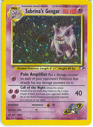 | Type | Psychic | | Pokemon serie | Gym Heroes | | Stadie | Stage 2 | | HP | 80 | | Sjældenhed | Rare | | Tilbagetrækning | 1 | | Modstand | F | | Kortnummer | 14 | | Evne |