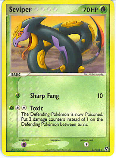 | Type | Grass | | Pokemon serie | Power Keepers | | Stadie | Basic | | HP | 70 | | Sjældenhed | Rare | | Tilbagetrækning | 1 | | Svaghed | P | | Kortnummer | 23 | | Evne |