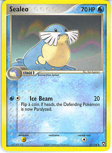 | Type | Water | | Pokemon serie | Power Keepers | | Stadie | Stage 1 | | HP | 70 | | Sjældenhed | Uncommon | | Tilbagetrækning | 1 | | Svaghed | L | | Kortnummer | 37 | | Evne |