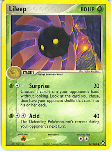 | Type | Grass | | Pokemon serie | Power Keepers | | Stadie | Stage 1 | | HP | 80 | | Sjældenhed | Common | | Tilbagetrækning | 2 | | Svaghed | R | | Kortnummer | 52 | | Evne |