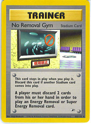 A player must discard 2 cards from his or her hand in order to play an Energy Removal or Super Energy Removal card.