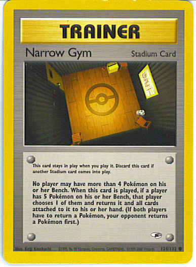 | Type | Trainer | | Pokemon serie | Gym Heroes | | Stadie | Trainer (Stadium) | | Sjældenhed | Common | | Kortnummer | 124 | | Evne |