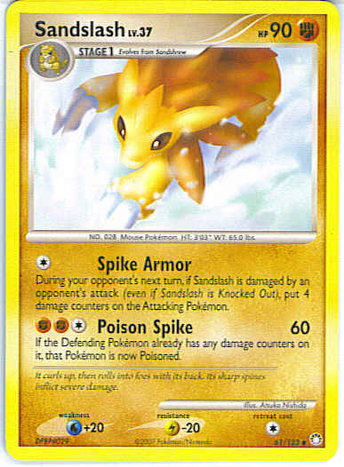 [C] Spike Armor - During your opponent's next turn, if Sandslash is damaged by an opponent's attack (even if Sandslash is Knocked Out), put 4 damage counters on the Attacking Pokemon.