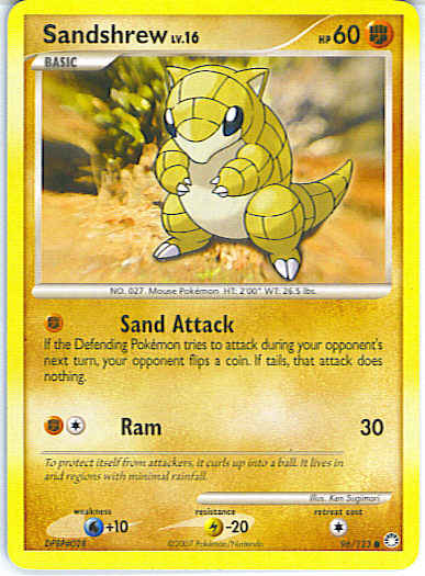 [F] Sand Attack - If the Defending Pokemon tries to attack during your opponent's next turn, your opponent flips a coin. If tails, that attack does nothing.