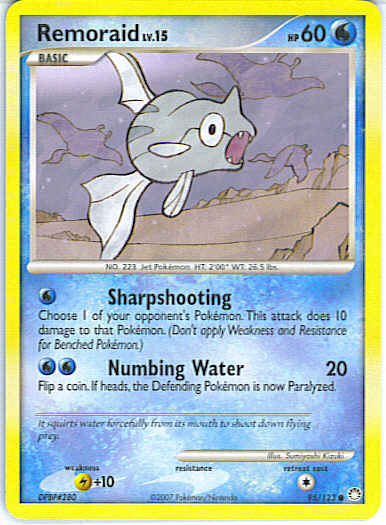 | Type | Water | | Pokemon serie | Mysterious Treasures | | Stadie | Basic | | HP | 60 | | Sjældenhed | Common | | Tilbagetrækning | 1 | | Svaghed | L+10 | | Kortnummer | 95 | | Evne |