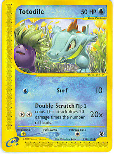 | Type | Water | | Pokemon serie | Expedition | | Stadie | Basic | | HP | 50 | | Sjældenhed | Common | | Tilbagetrækning | 1 | | Svaghed | L | | Kortnummer | 134 | | Evne |