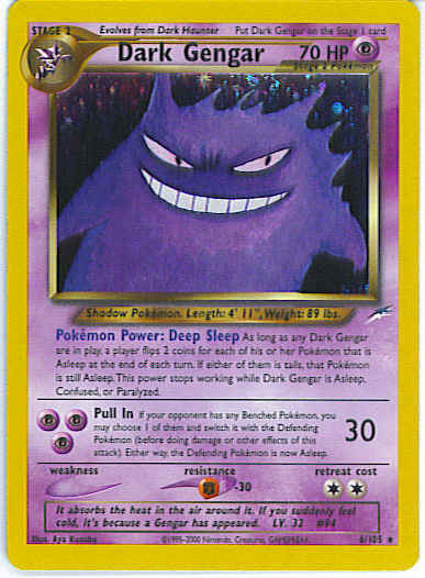 | Type | Psychic | | Pokemon serie | Neo Destiny | | Stadie | Stage 2 | | HP | 70 | | Sjældenhed | Rare | | Tilbagetrækning | 2 | | Modstand | F | | Kortnummer | 6 | | Evne |