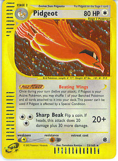 | Type | Colorless | | Pokemon serie | Expedition | | Stadie | Stage 2 | | HP | 80 | | Sjældenhed | Rare | | Modstand | F | | Svaghed | L | | Kortnummer | 23 | | Evne |