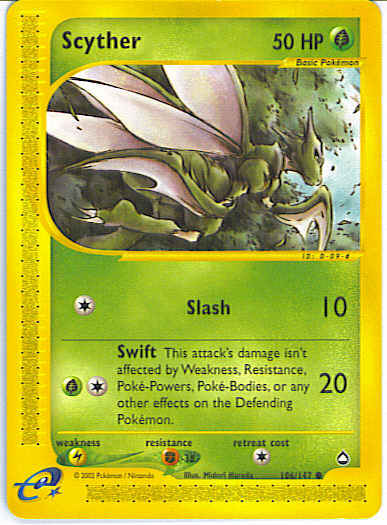 | | Evne2 | [C] Slash (10) [CG] Swift (20) This attack's damage isn't affected by Weakness, Resistance, Poke-Powers, Poke-Bodies, or any other effects on the Defending Pokemon.