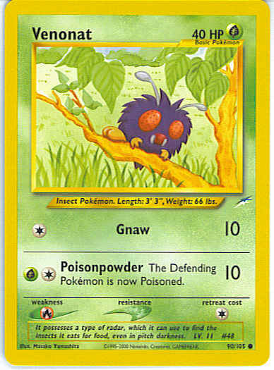 | Type | Grass | | Pokemon serie | Neo Destiny | | Stadie | Basic | | HP | 40 | | Sjældenhed | Common | | Tilbagetrækning | 1 | | Svaghed | R | | Kortnummer | 90 | | Evne |