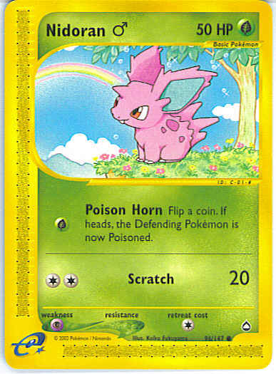 | | Evne2 | [G] Poison Horn - Flip a coin. If heads, the Defending Pokemon is now Poisoned. [CC] Scratch (20)