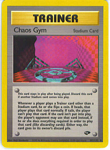 | Type | Trainer | | Pokemon serie | Gym Challenge | | Stadie | Trainer (Stadium) | | Sjældenhed | Rare | | Kortnummer | 102 | | Evne |