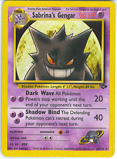 | Type | Psychic | | Pokemon serie | Gym Challenge | | Stadie | Stage 2 | | HP | 90 | | Sjældenhed | Rare | | Tilbagetrækning | 2 | | Modstand | F | | Kortnummer | 29 | | Evne |