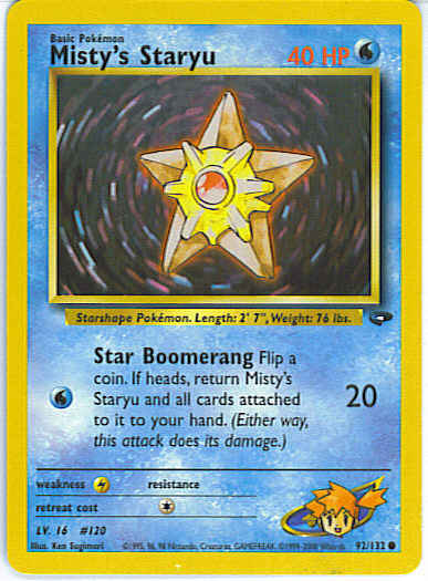 [W] Star Boomerang (20) Flip a coin. If heads, return Misty's Staryu and all cards attached to it to your hand. (Either way, this attack does its damage.)