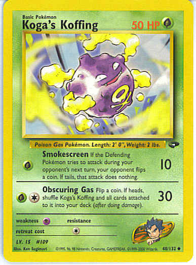 [CG] Obscuring Gas (30) Flip a coin. If heads, shuffle Koga's Koffing and all cards attached to it into your deck (after doing damage).