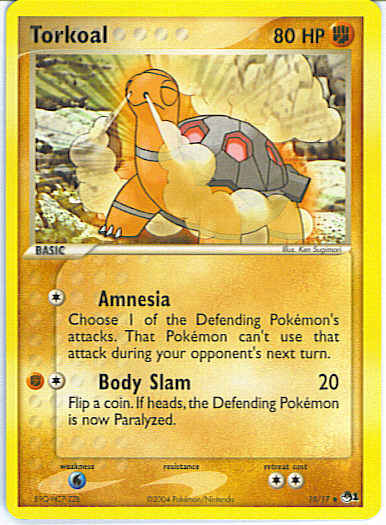 | | Evne2 | [C] Amnesia - Choose 1 of the Defending Pokemon's attacks. That Pokemon can't use that attack during your opponent's next turn. [CF] Body Slam (20) Flip a coin. If heads, the Defending Pokemon is now Paralyzed.