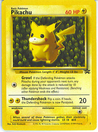 [C] Growl - If the Defending Pokemon attacks Pikachu during your opponent's next turn, any damage done by the attack is reduced by 10 (after applying Weakness and Resistance). (Benching either Pokemon ends this effect.)