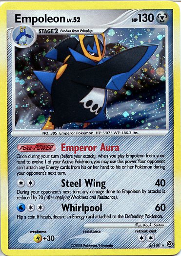 [CC] Steel Wing (40) During your opponent's next turn, any damage done to Empoleon by attacks is reduced by 20 (after applying Weakness and Resistance).