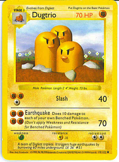 [FFFF] Earthquake (70) Does 10 damage to each of your own Benched Pokemon. (don't apply Weakness or Resistance for Benched Pokemon.)