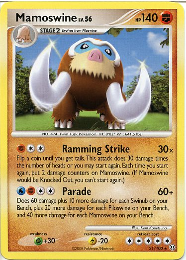 [CCFW] Parade (60+) Does 60 damage plus 10 more damage for each Swinub on your Bench, plus 20 more damage for each Piloswine on your Bench, and 40 ore damage for each Mamoswine on your Bench.