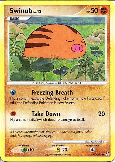 [F] Take Down (20) Flip a coin. If tails, Swinub does 10 damage to itself.