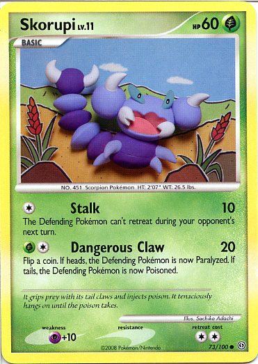 [CG] Dangerous Claw (20) Flip a coin. If heads, the Defending Pokemon is now Paralyzed. If tails, the Defending Pokemon is now Poisoned.