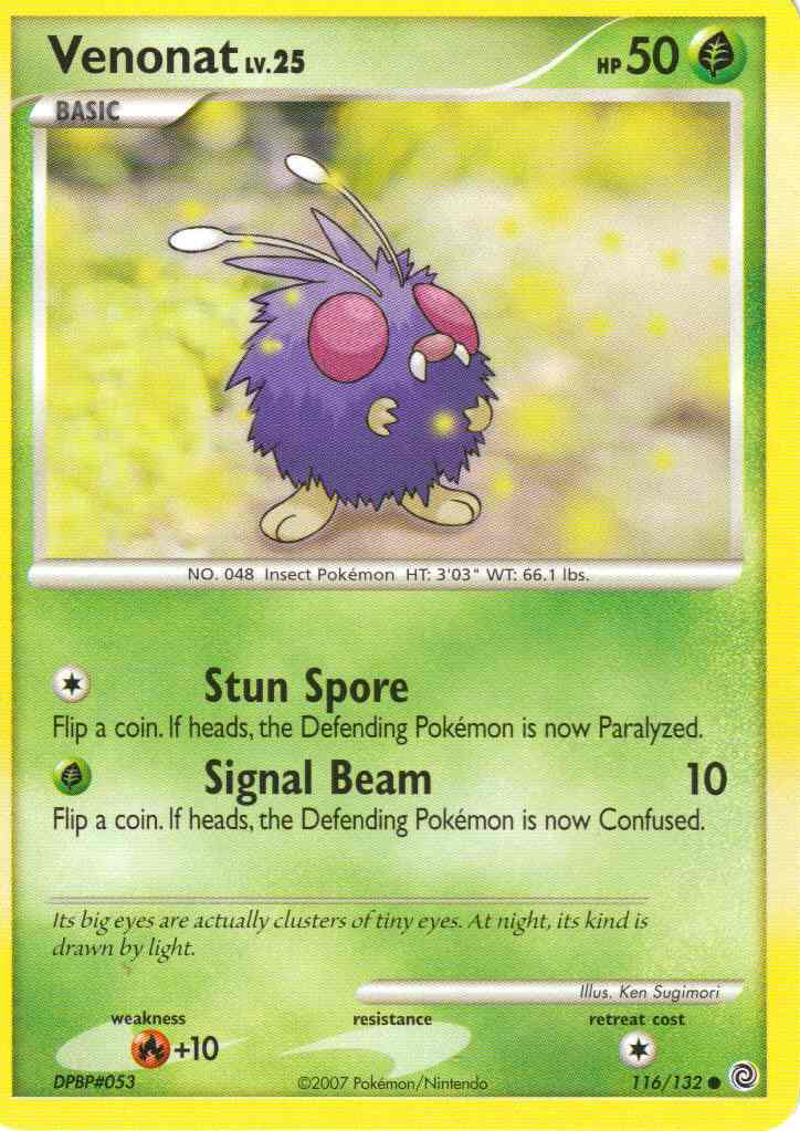 | Type | Grass | | Pokemon serie | Secret Wonders | | Stadie | Basic | | HP | 50.0 | | Sjældenhed | Common | | Tilbagetrækning | 1.0 | | Svaghed | R+10 | | Kortnummer | 116 | | Evne |