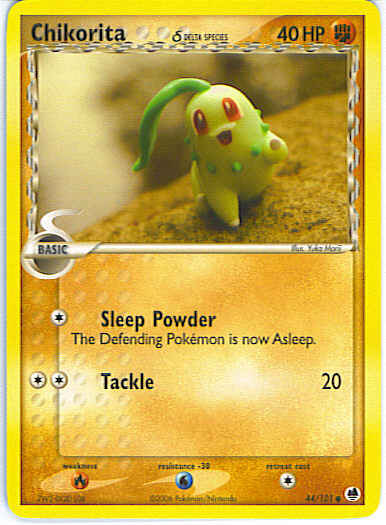 | Type | Fighting | | Pokemon serie | Dragon Frontiers | | Stadie | Basic | | HP | 40 | | Sjældenhed | Common | | Tilbagetrækning | 1 | | Modstand | W | | Svaghed | R | | Kortnummer | 44 | | Evne | [C] Sleep Powder - The Defending Pokemon is now Asleep. [CC] Tackle (20)