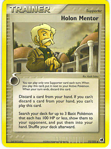 | Type | Trainer | | Pokemon serie | Dragon Frontiers | | Stadie | Trainer (Supporter) | | Sjældenhed | Uncommon | | Kortnummer | 75 | | Evne |