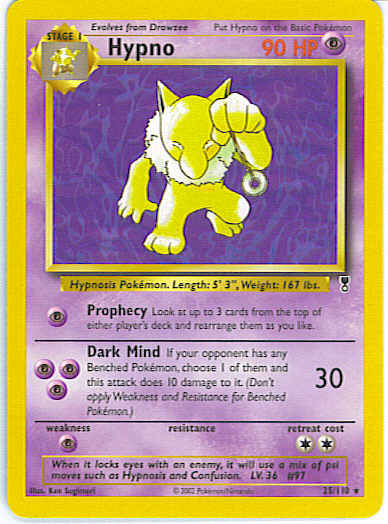 | Type | Psychic | | Pokemon serie | Legendary Collection | | Stadie | Stage 1 | | HP | 90 | | Sjældenhed | Rare | | Tilbagetrækning | 2 | | Svaghed | P | | Kortnummer | 25 | | Evne |