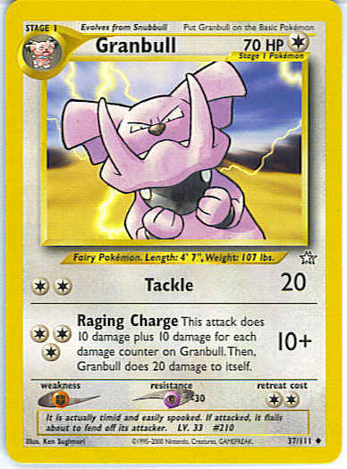 [CCC] Raging Charge (10+) This attack does 10 damage plus 10 damage for each damage counter on Granbull. Then, Granbull does 20 damage to itself.