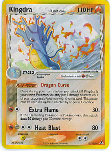 | Type | Fire Metal | | Pokemon serie | Holon Phantoms | | Stadie | Stage 2 | | HP | 110 | | Sjældenhed | Rare | | Tilbagetrækning | 4 | | Svaghed | L | | Kortnummer | 10 | | Evne |